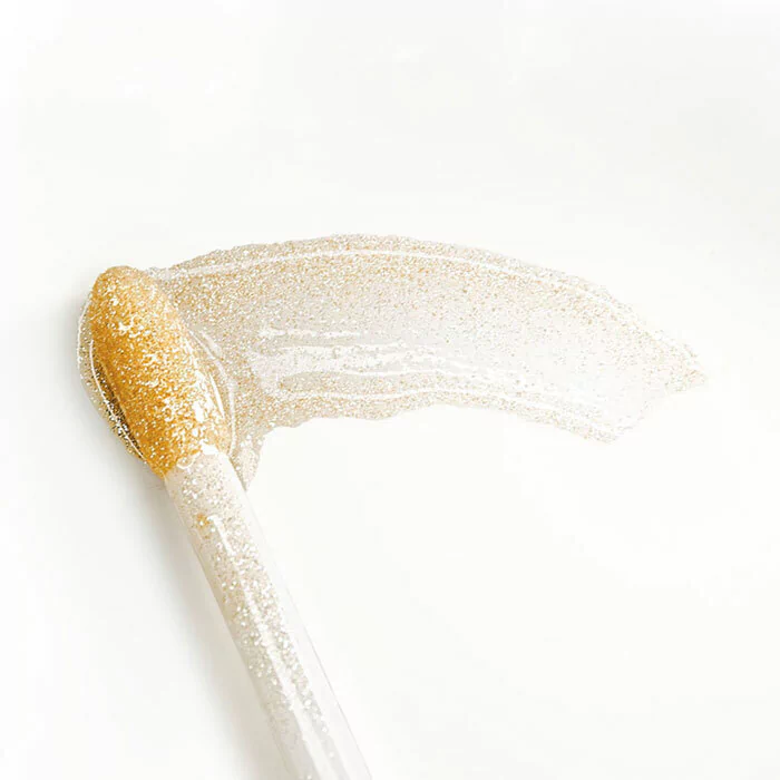 Gloss Gold. Textura no pegajosa. Traslúcido con perlas doradas que le dan el toque perfecto para un makeup exquisito. Se puede usar solo o después de nuestro labiales velvet semi mate, para finalizarlos bien arriba. No migra!!.